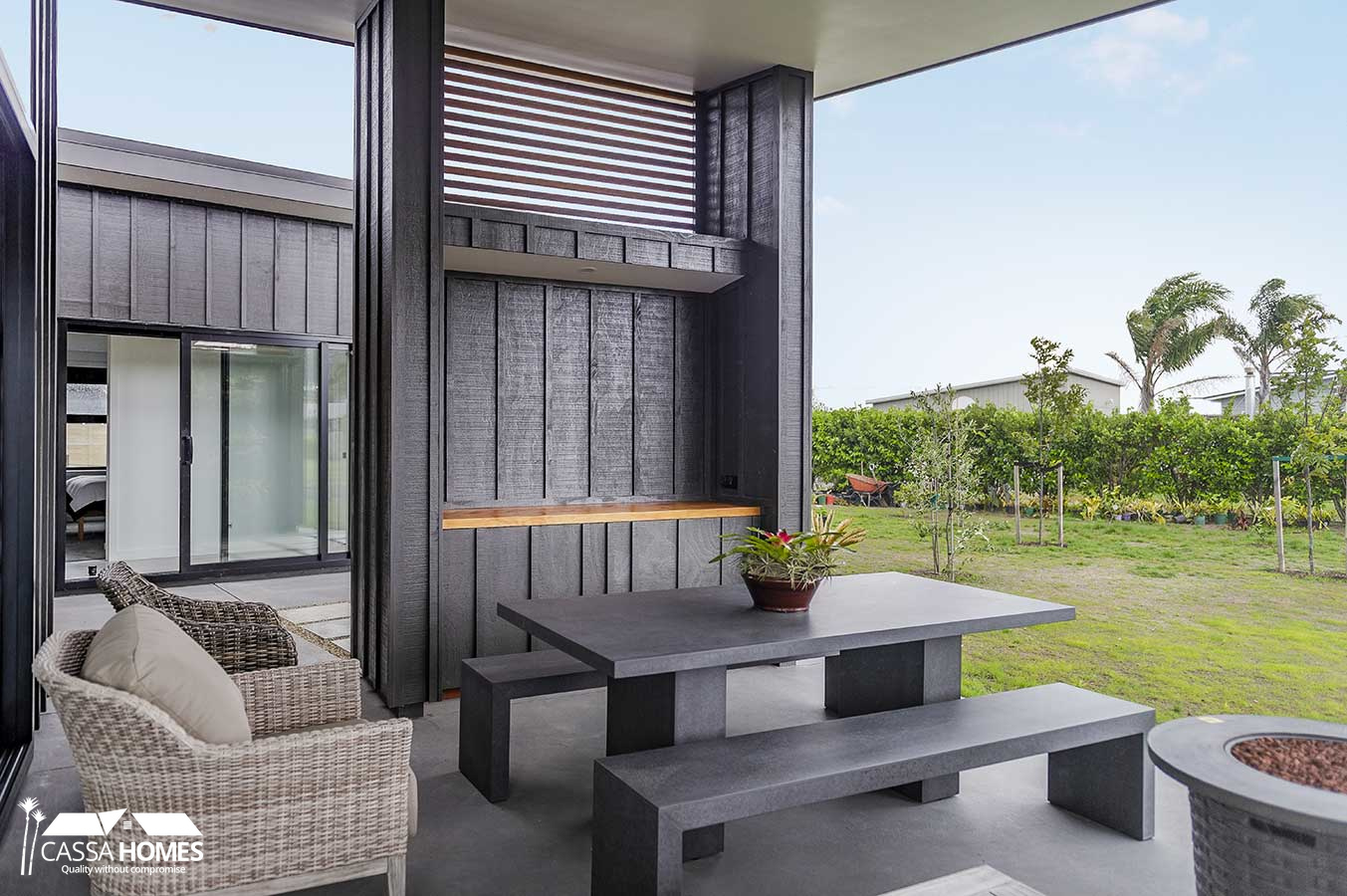 We added an outdoor BBQ area with large covered roof and sliding privacy screens, we added a central toilet and laundry