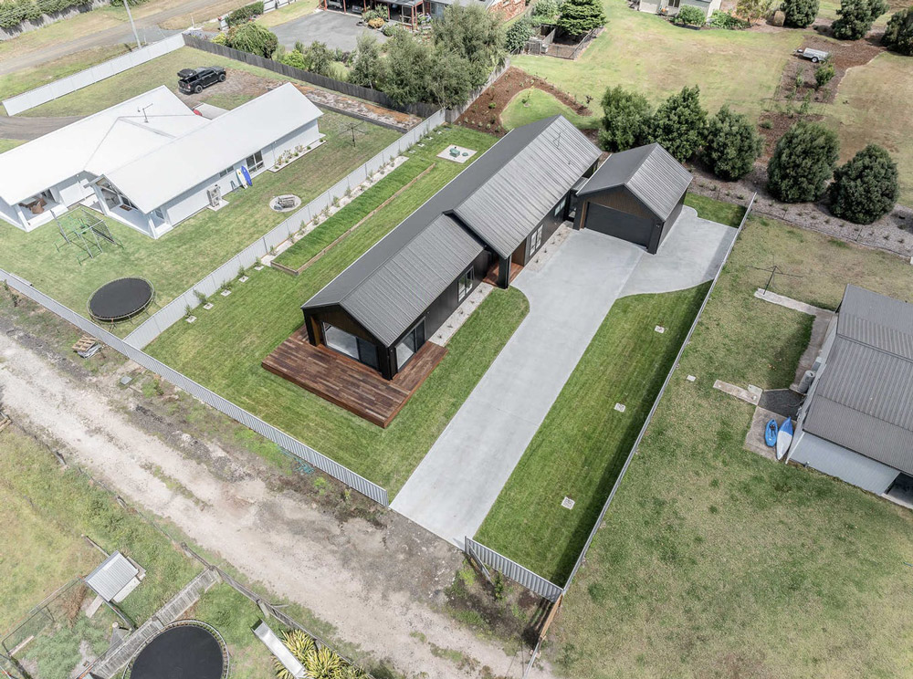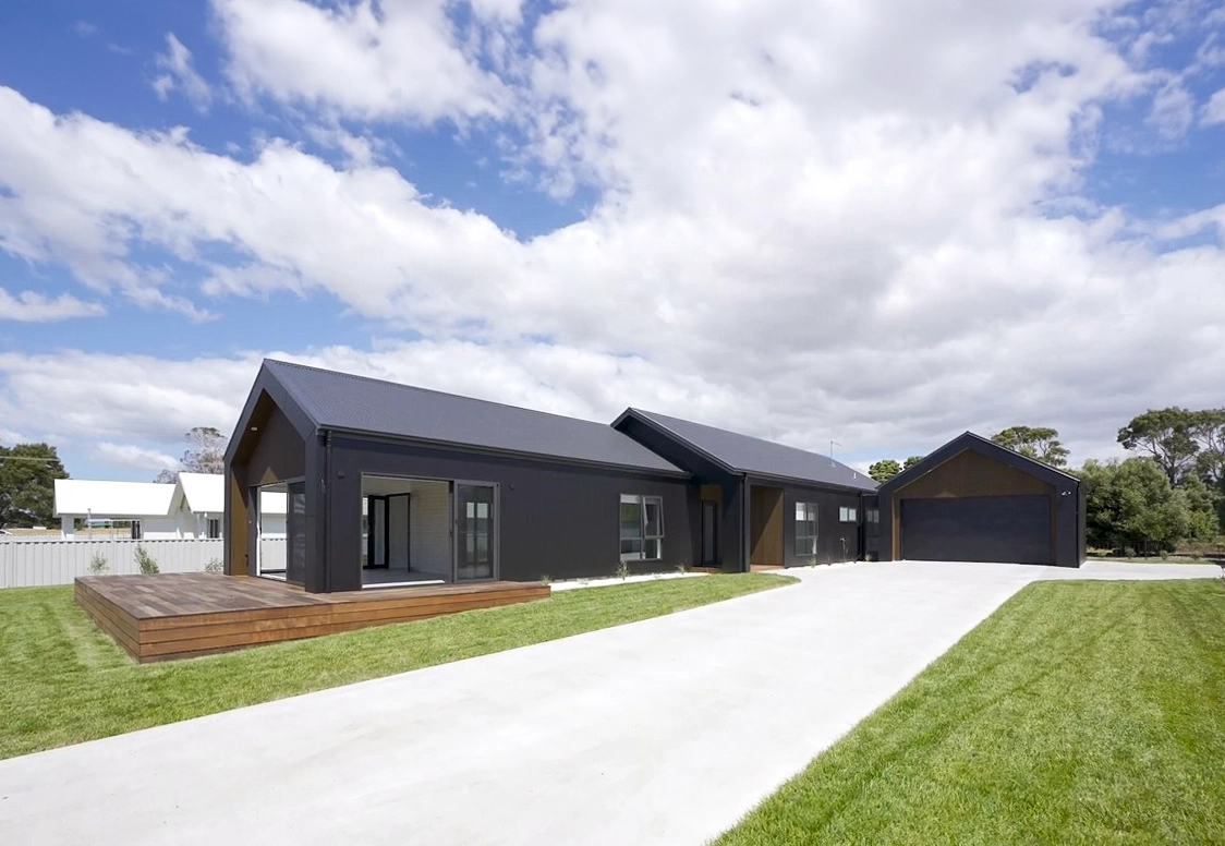 Black timber cladding contrasts beautifully with natural timber decking, giving the home a contemporary edge.